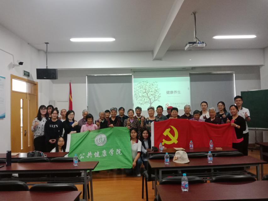 2019年5月29日下午,tyc33455cc太阳集团员工党支部党员老师及同学带领入党积极分子来到江春社区,开展“关注老人、健康养生、饮食有节、运动有法”养生和健体知识科普活动。