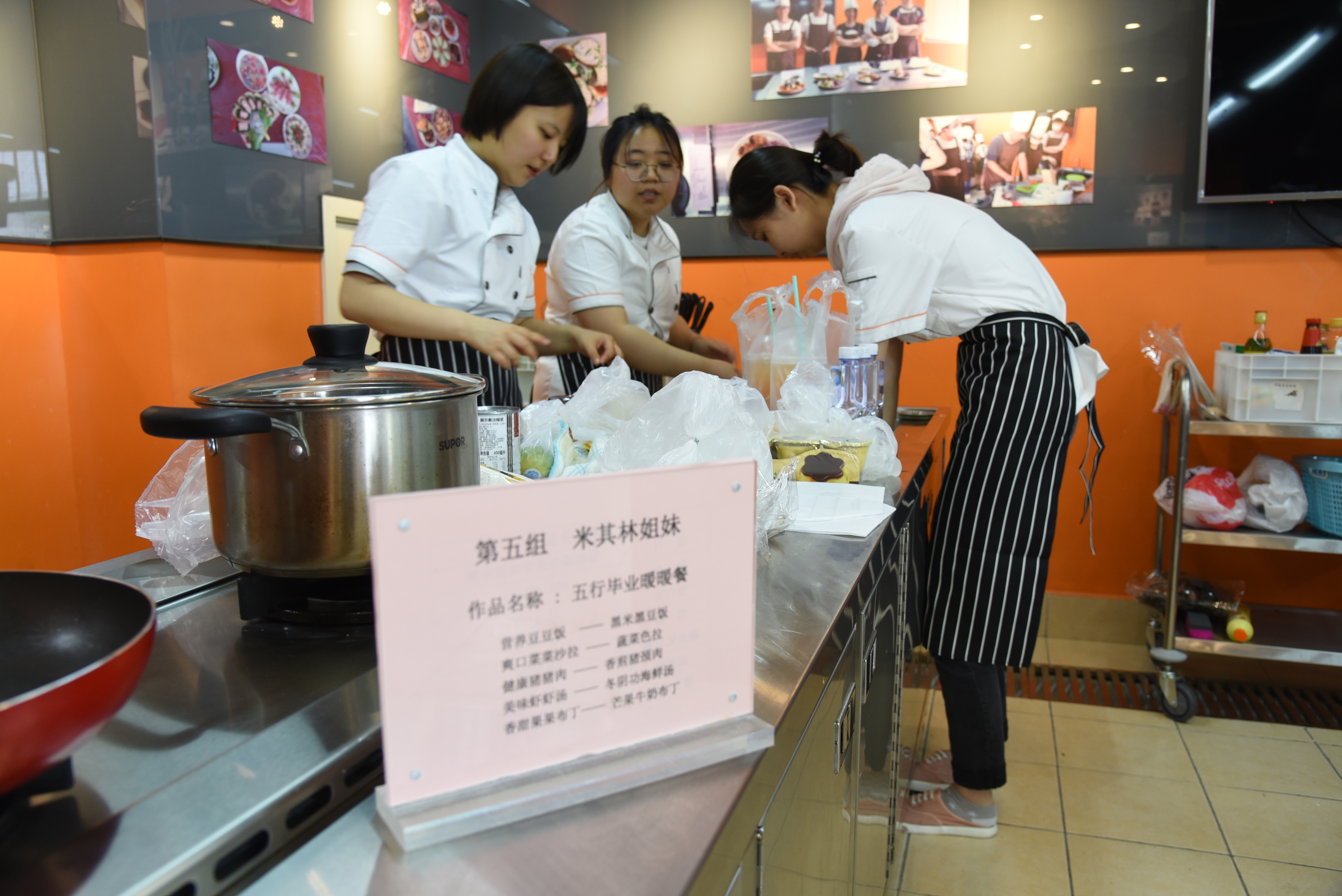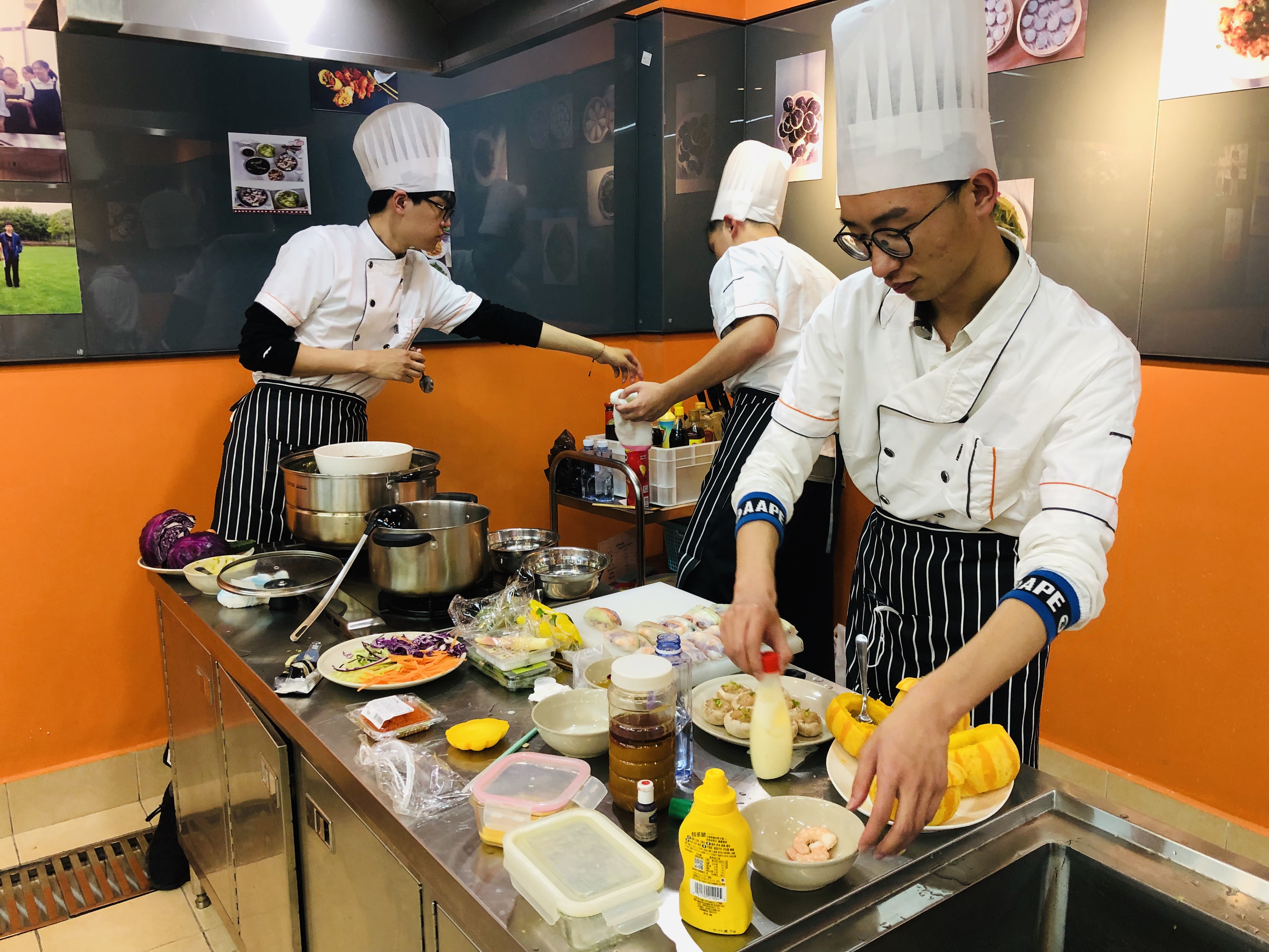 本次比赛经过前期报名、初审选拔,最终有10支队伍晋级当天的决赛,他们分别来自基础医公司、中药公司、针推公司、护理公司、tyc33455cc太阳集团、护理公司、国际教育公司等不同公司、不同专业,甚至不同国籍同学组队参赛。为了使每支队伍设计的毕业餐更加营养健康、美味可口并蕴含文化特征,主办方邀请了tyc33455cc太阳集团导师团导师、健康营养研究室沈红艺老师和基础营养教研室和刘霞、顾翠英三名导师,在决赛前期赛前分别从毕业餐设计、评分标准、实训室使用三个方面为参赛者进行专业的培训及现场试做指导。