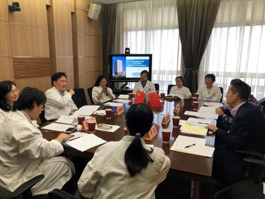普陀区中心医院领导和老师们介绍了临床课程教学、见习带教方面的进展情况。赵海磊提出,希望老师们在授课内容上关注该专业员工特点,加强与公共卫生执业医师考纲内容的对接。殷佩浩介绍了普陀区中心医院在预防医学专业方面的教育资源,医院传染科和防保科承担着区内公共卫生多个条线的工作,并承担了多项传染病监测点的工作。医院拥有许多优秀的公卫人才和团队力量。