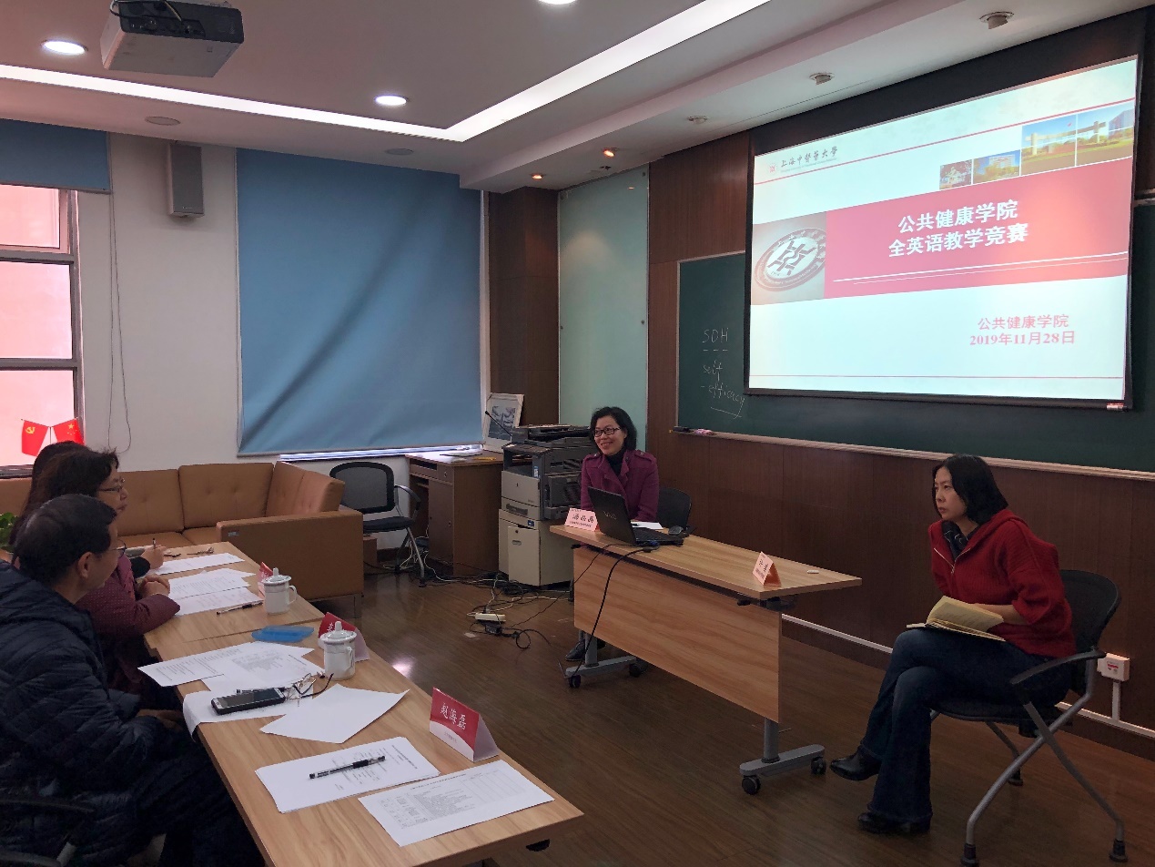 2019年11月28日上午,公司组织了全英语教学竞赛交流活动。公司邀请了公司曲丽芳教授、李征宇教授,以及本院赵海磊副经理担任评委。参赛的两位选手为食品卫生与营养学教研室的许琪老师和卫生管理学教研室的汤晶晶老师。
