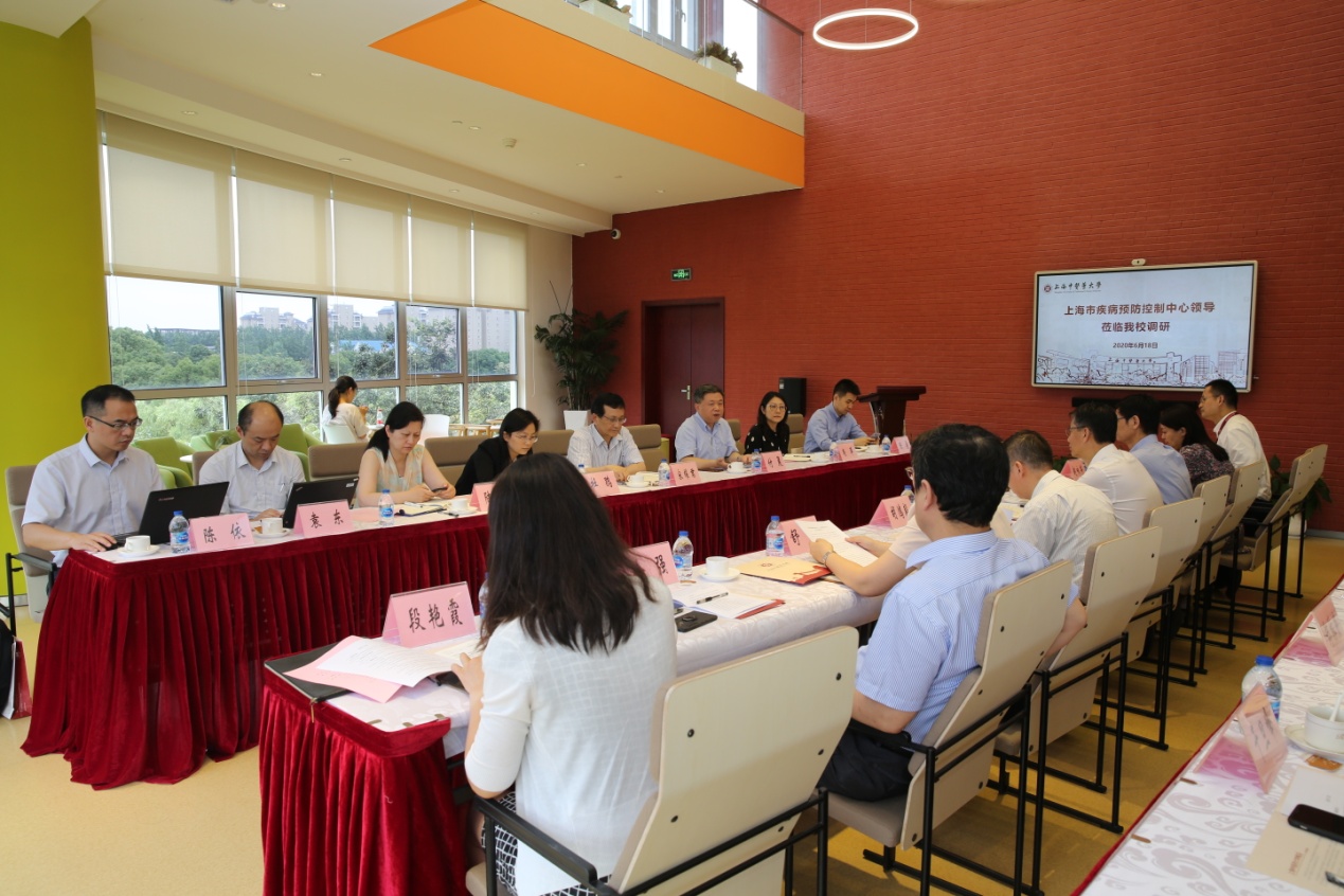 6月18日下午,上海市疾病预防控制中心党委书记宋耀君带队来公司开展公共卫生学科人才队伍建设调研。上海市卫生健康委员会干部人事处杜鹃、上海市疾病预防控制中心主任付晨及各处室负责人和公司党委副书记许铁峰、副董事长胡鸿毅、副董事长杨永清、tyc33455cc太阳集团经理赵海磊、党总支书记段艳霞以及公司相关职能部门负责人参加会议。会议由许铁峰副书记主持。