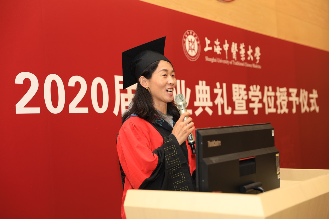 “导师团最后一课”将典礼推向了高潮,由导师代表荆丽梅和上海市疾病预防控制中心主任付晨担任主讲。荆老师以祝贺、感谢、期待为关键词,鼓励同学们抓住机遇,迎接挑战,做无怨无悔的公共健康人。她借哈佛大公司园中的一句铭文“进入校园是为了增长知识,离开校园是为了更好地为你的国家和人民服务”为寄语,殷切期望同学们在未来的求学和工作道路上,不忘初心,砥砺前行,努力为我国乃至全球公共健康事业发展做出自己的贡献。付晨主任热情欢迎和肯定“后浪”们在这样一个特殊时期,勇敢选择加入到公共卫生事业中,一定可以在这片充满希望的广阔天地中开拓疆土,施展才华,通过自身努力,创造事业的辉煌。并对毕业生提出了四点希望:一、胸怀全局。树立远大目标和宏大格局,放眼长远,不忘初心,把国家的建设和自身的发展紧密结合,与时代同步伐,与国家共命运。二、心怀感恩。感恩新时代带来的发展机遇,感恩母校、老师、父母的培养,感恩单位搭建的发展平台,汇报国家、社会、母校和家人。三、踏实进取。养成扎实靠谱的做事风格,认真学习、多工作负责,多琢磨事,少琢磨人,不夸夸其谈,更不弄虚作假,脚踏实地,久久为功,为实现人生梦想的道路执着前行。四、自信平和。无惧任何挑战和困难,凡是走正道,做一个自信的、平和的、正直的、受尊敬的人。