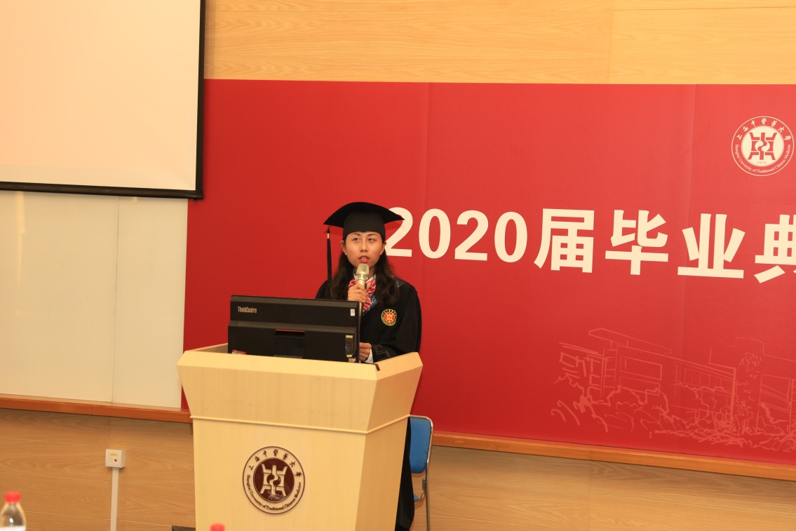 典礼上,毕业生原创视频《回忆·感恩》温情回忆了大学四年生活,表达了毕业生们对公司、公司的感恩之心。毕业生代表许艺帆的发言,表达了对四年来领导关怀、老师教导的感谢,对同窗情谊的难忘。作为“最特别的一届毕业生”,作为本校推免的公卫硕士,许艺帆提出,疫情对于公卫学子来说既是机遇也是挑战,要不断思考如何把个人理想融入国家和民族的事业中。她表示会牢记校训,发扬中医学子求真务实的精神,继续在公共卫生领域不断探索,努力成为新一代的公卫人。