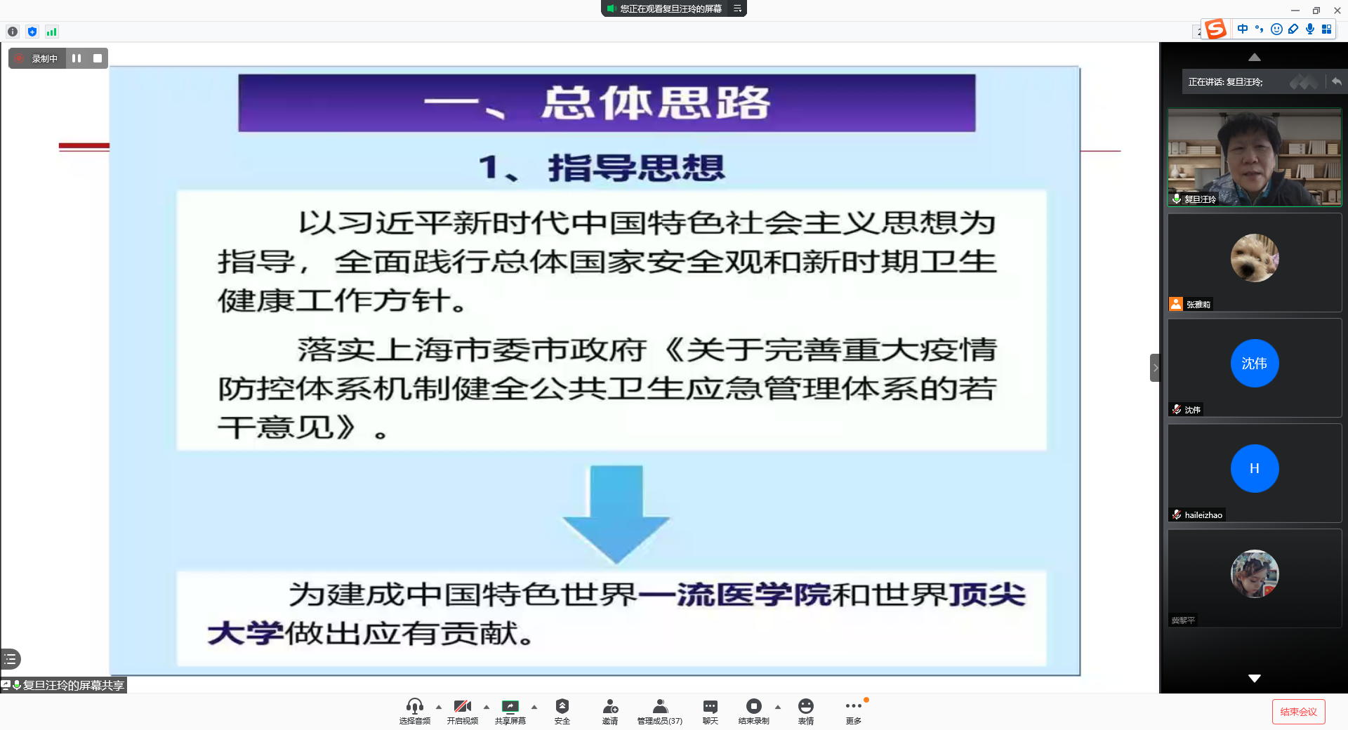 讲座开始前,赵海磊对汪玲教授作了简要介绍,并对汪教授为公司师生开展线上讲座表示感谢。汪玲教授目前担任全国医学专业学位教育指导委员会委员兼副秘书长、中国学位与研究生教育学会学术委员会委员和医药科工作委员会副主任、教育部医学人文素质与全科医学教学指导委员会委员等多项学术任职,并获得国家“有突出贡献的中国博士”、“全国首届百名中青年医学科技之星”、上海市“三八红旗手”、“国家级教学成果特等奖”等多项荣誉及称号。
