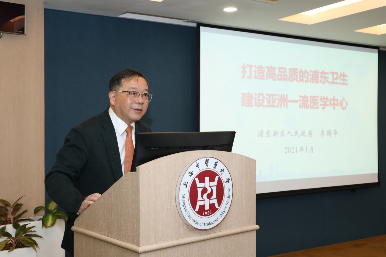 李国华教授以“打造高品质的浦东卫生建设亚洲一流医学中心”为题,立足浦东新区卫生事业,建设亚洲一流医学中心,提出几点建议和思考。他讲到,浦东新区将通过“一体管总、两核集成、四轮驱动”构筑强大的公共卫生堡垒;优先推进肿瘤、儿童医学与口腔三大中心建设全力打造医学高地;通过区域集团化建设与“强腰行动”建立分级诊疗与一体化服务标杆;以细胞和基因治疗为重点塑造科学城生物医药产业名片,以及利用自贸区政策激活市场和促进健康服务业,共同促进浦东新区医疗卫生事业发展。在提问与交流环节,李国华教授回复了tyc33455cc太阳集团张安副教授提出的关于浦东新区“十四五”规划中对发展中医药和文化传承方面的问题,表示新区政府高度重视中医药事业的发展,未来会继续在多方面出台支持中医药事业发展和传承的政策。