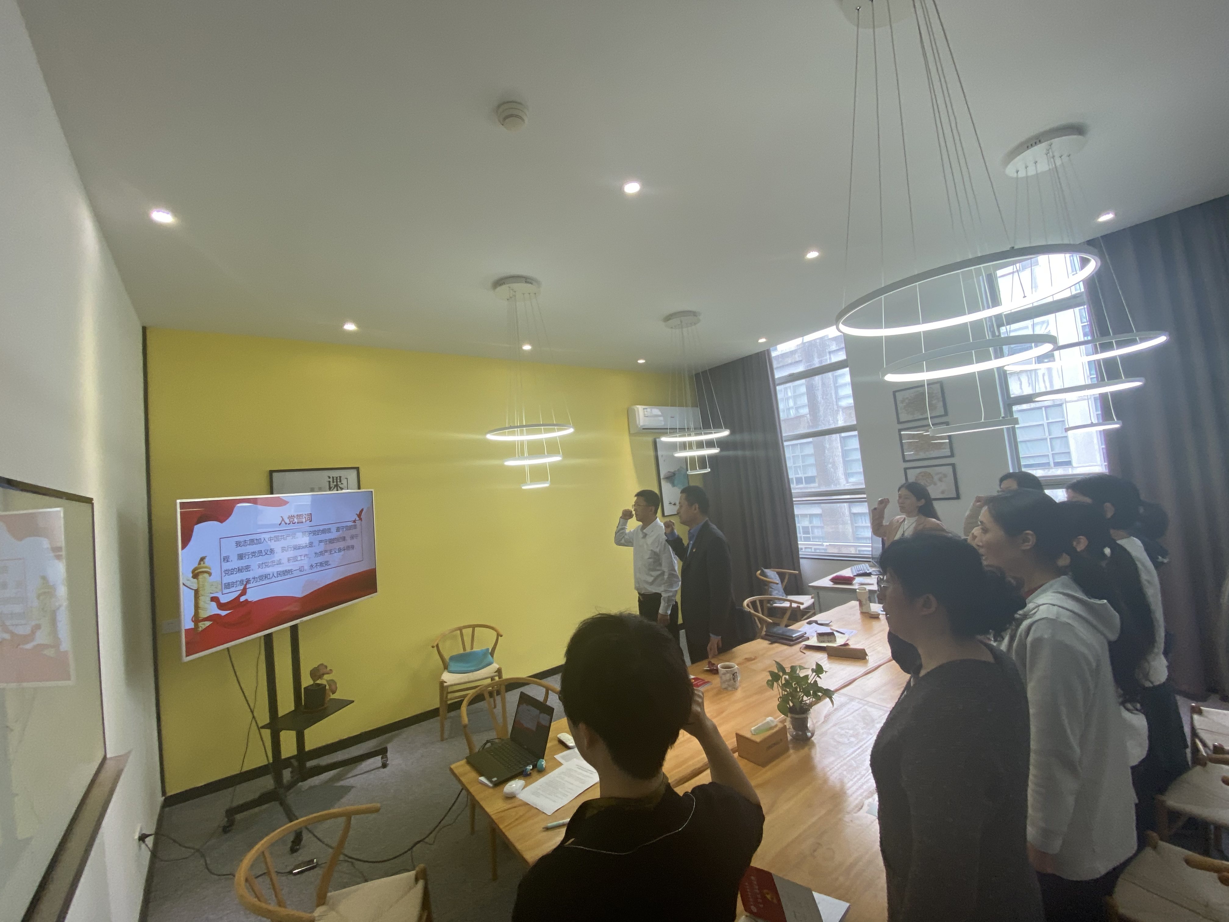 此次政治生日会开始,教工第一党支部书记张安介绍了两位党员的政治生日,并带领两位寿星公和所有其他党员重温了入党誓词,在庄严的宣誓后,党支部书记和赵海磊经理为两位过生日的党员送上了支部全体成员签字的贺卡作为生日礼物。