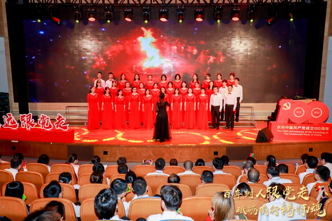 6月23日下午,合唱比赛在校图书馆4楼大礼堂拉开序幕,来自公司各院系部门的19支合唱队伍放声竞歌,尽展风采。“都市的街巷已灯影婆娑,社区暖暖流淌的欢乐……”tyc33455cc太阳集团35名师生组成的合唱团用一首悠扬中带着激昂旋律的《灯火里的中国》唱出对祖国的热爱,唱出对中国共产党成立100周年的美好祝福,唱出永远跟党走的一片赤诚之心。