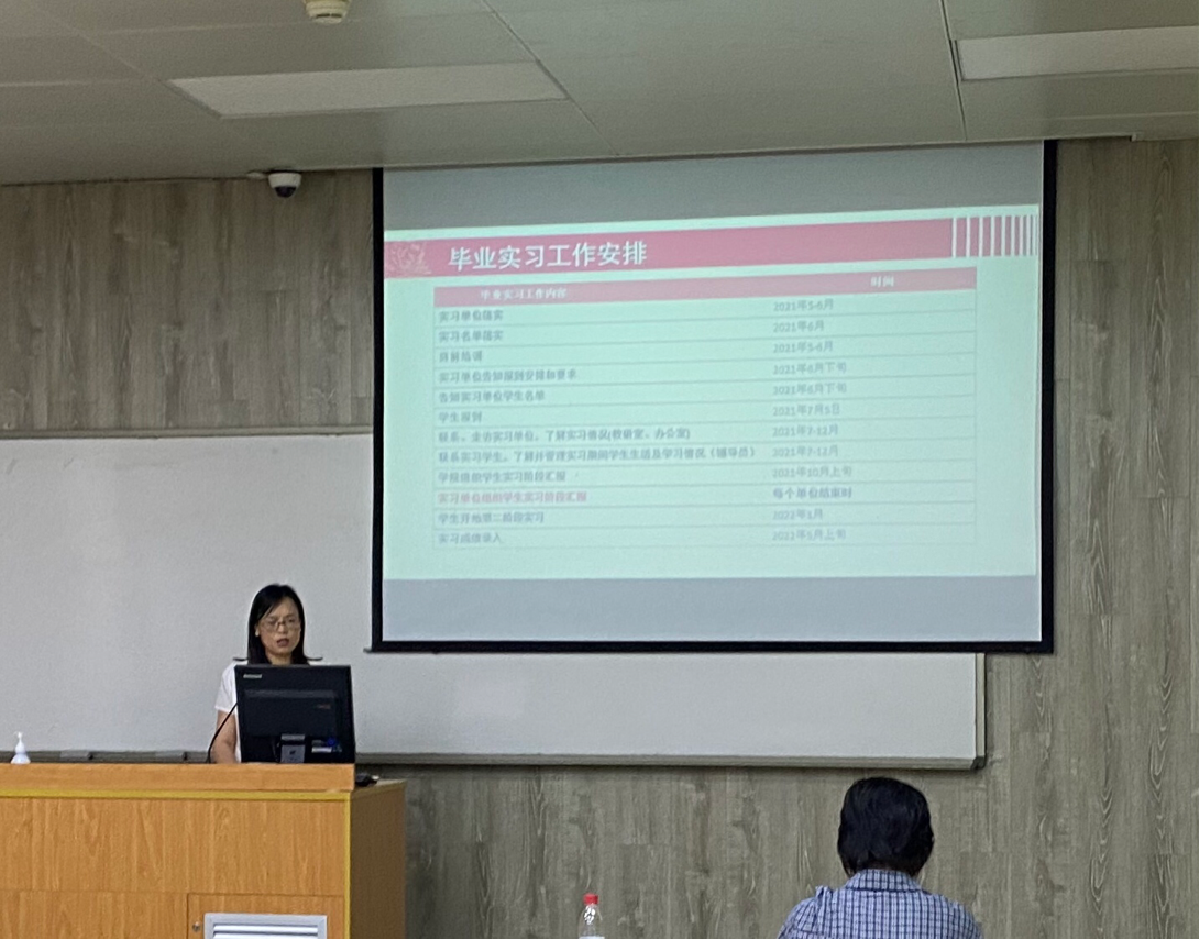 党总支副书记干旦峰对实习规章制度作出详细解读,特别强调实习纪律和请销假制度,希望同学们严格遵守公司和实习单位的规章制度,以积极态度迎接毕业实习。