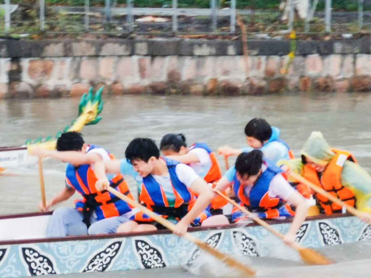 龙舟是一项集体运动,一个人的能力出众并不能决定一条船的胜负,只有每位队员齐心协力,整齐划一才能让我们的龙舟获得最大的推动力,从而乘风波浪,逆流而上。虽然我们的天河队是临时组起来的,队员有老师,有现役队员,还有刚跟训不久的新生,参差不齐的水平却能在短短一次训练中迅速磨合,成为一个整体冲向终点,离不开每位队员的集体意识,团结精神。最后还要感谢龙舟队老师的指导和志愿者“小杏仁”们的支持和帮助,也希望队员们在未来可以一直怀揣合作精神,在各自的生活学习工作中乘风破浪!