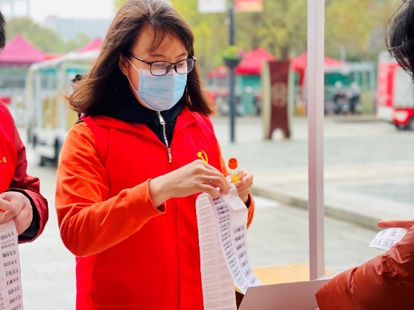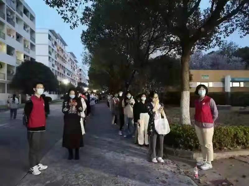一接到公司封闭管理通知,党总支书记段艳霞应召“逆行”,即刻返回校园,作为片区长在校内值守,严格按照疫情防控要求开展排摸、梳理、应急等管理工作。她作为公司党总支负责人,线上指挥公司总体疫情防控工作,线下关心好留守校内的师生;作为值守人员,在部分教师因紧急在线教学需要取回办公室资料时,她一次次往返于办公室和校门口运送资料;她作为一名普通志愿者,参与到校园核酸检测工作中。