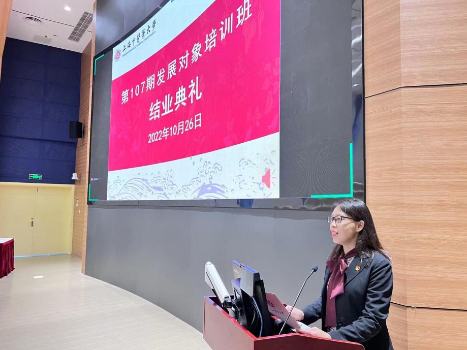 班主任江慧芬同志对培训班开展情况进行总结。培训班9月28日-10月26日期间举办,共有学员80人,来自19个直属党组织。围绕“坚定理想信念,自觉成才奉献”的主题,精心设计25学时的教学内容,突出党的理论教育和党性教育,帮助学员深入学习贯彻党的十九大精神的同时,引导学员主动关注党的二十大,并围绕会议精神的学习开展分组讨论、简报设计。全体学员通过党的理论知识测试和述学答辩,撰写较高质量学习小结,结业率100%。