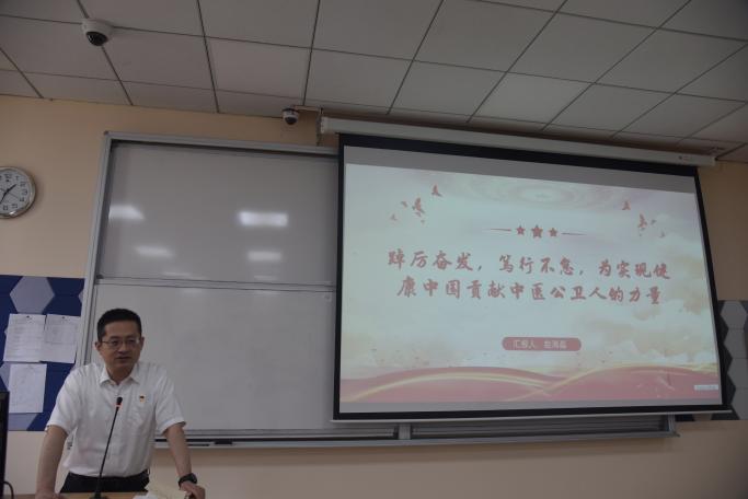 赵海磊经理作《踔厉奋发,笃行不怠,为实现健康中国贡献中医公卫人的力量》党课报告,从主题教育总要求出发,对《“健康中国2030”规划纲要》进行解读,最终着眼于中医公卫人的使命——以中医药创造性的研究成果提升人民健康水平。在十四五规划迎来中期之际,勉励公卫师生传承精华、守正创新,踔厉奋发、笃行不怠,共同转变观念,着力于高质量发展,紧密围绕深化公司产品改革,发挥中医药学科优势,提升公共卫生和预防医学学科实力,努力推动公卫事业发展。