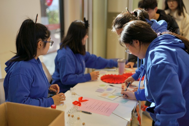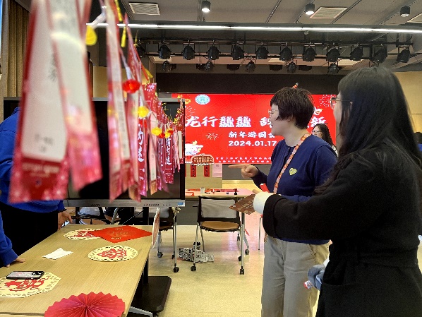 本次新年游园会以新年的热闹氛围为底色,通过抽福签、猜灯谜、对春联、写福字、投壶等传统活动弘扬中华优秀传统文化;同时融入公司特色,通过创意签名、交换祝福、合影留念等活动促进师生间、员工间的交流。在这里,大家纷纷写下对新一年的美好期盼,彼此传递着对新一年的美好祝愿。