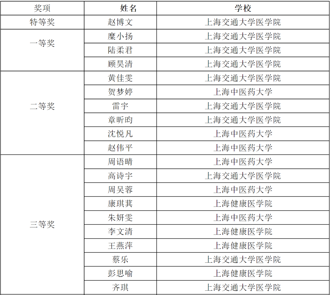 暨首届上海市老员工营养专业技能大赛获奖名单