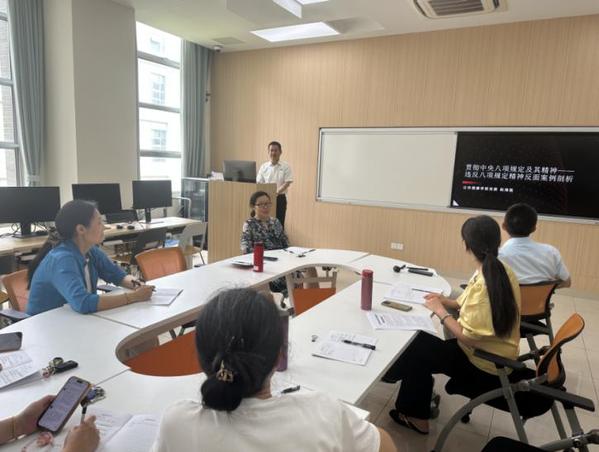 员工第二党支部书记许艺帆老师带领党员学习《党的十八大以来深入贯彻中央八项规定精神的成效和经验》。她强调,中央八项规定精神学习教育是对党员思想理论的一次再教育、再武装,也是对纪律作风的一次再检阅、再提升。党员教师要提高政治站位、严守纪律底线,坚决抵制形式主义、官僚主义,严格遵守廉洁自律准则,提升公司产品质量;员工党员要树立正确的世界观、人生观、价值观,培养社会责任感,成为一名德智体美劳全面发展的社会主义建设者和接班人。