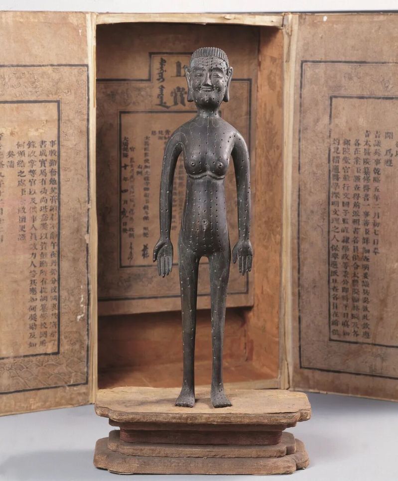 乾隆九年御制针灸铜人为上海中医药博物馆“镇馆之宝”。展览中,我国首个李时珍立体雕塑、陈存仁“肺部虚弱咳嗽”膏方、胡彭寿医生使用过的小提琴等展品,既展现了中医药的学术传承,也呈现了医者“技近乎道”的人文情怀。而上药神象健康药业有限公司提供的三百年“神象野山参王”,仅在开幕当日限定展出,其虬曲的根茎间凝结着岁月精华。